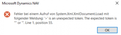 Fehler bei einem Aufruf von System.Xml.XmlDocumentLoad mit folgender Meldung: ‚>‘ is an unexpected Token